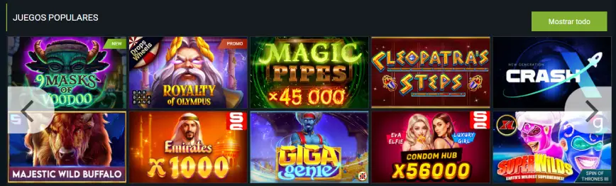 • 🎲 Tragamonedas: Con miles de títulos, las tragamonedas son una de las principales atracciones. Desde slots clásicas hasta las más modernas con gráficos 3D, hay algo para cada tipo de jugador.