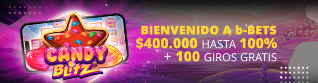 El bono de bienvenida es el incentivo estrella para los nuevos jugadores en b-Bets, ofreciendo un 100% hasta $400,000 CLP más 100 giros gratis.