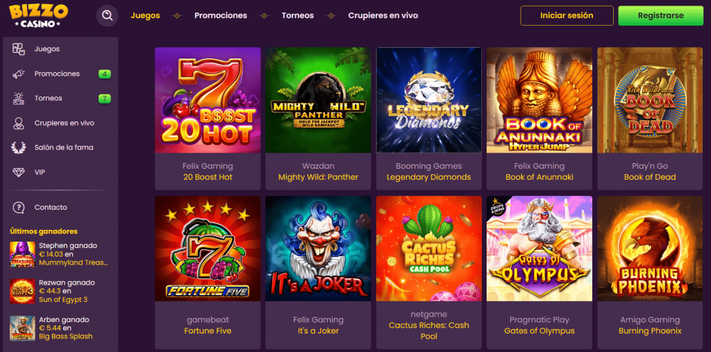 La experiencia del casino en vivo en Bizzo es algo que siempre resalto en mis reseñas. Con juegos como blackjack, póker, ruletas y baccarat, dirigidos por crupieres reales, la sección de crupier en vivo ofrece una experiencia auténtica que simula estar en un casino físico. Esta interacción en tiempo real es muy valorada por jugadores que buscan una experiencia de juego más personal y dinámica.