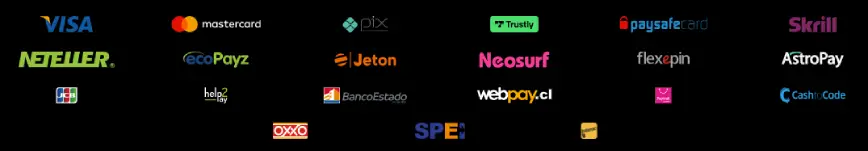 | 💳 Métodos de Pago | Visa, MasterCard, Neteller, Skrill, EcoPayz, Banco Estado, WebPay, AstroPay, OXXO Pay, etc |