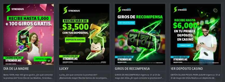 Los códigos promocionales son otra forma fantástica de aprovechar ofertas especiales en Strendus. Estos códigos pueden darte acceso a bonos sin depósito, giros gratis o mejorar los términos de los bonos existentes.
