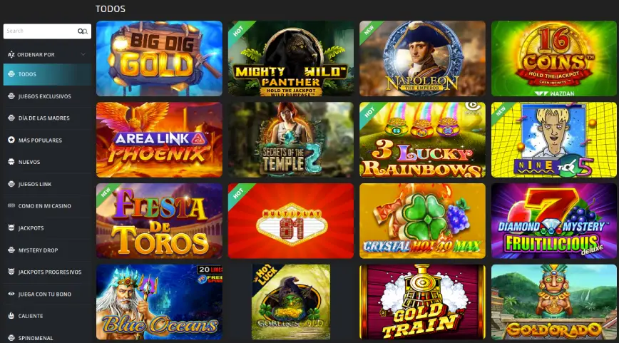 | 🎲 Juegos de casino | Tragamonedas, ruleta (Americana y Europea), blackjack, póker con más de 40 variantes, bingos, baccarat y loterías. |
