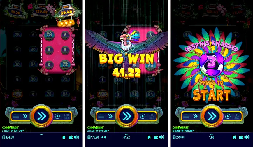 - 🎰 Familiarización con el juego: A Flight of Fortune no utiliza líneas de pago tradicionales. En su lugar, emplea una mecánica de coleccionismo con el sistema CoinVerge, lo que requiere un entendimiento previo para maximizar las oportunidades de ganar.