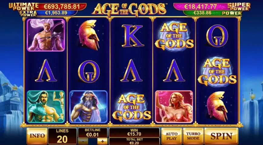Age of the Gods ofrece un rango de apuestas adecuado para la mayoría de los jugadores, permitiendo apuestas desde 0,20 hasta 40 créditos por tirada. Esta flexibilidad en las apuestas asegura que los jugadores puedan controlar su presupuesto y disfrutar del juego sin preocupaciones, ajustando su estrategia según su estilo de juego preferido.