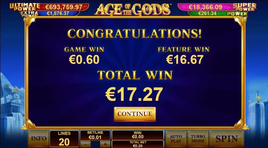 Uno de los atractivos más significativos de jugar a Age of the Gods es la posibilidad de ganar uno de sus cuatro jackpots progresivos, que pueden cambiar la vida de cualquier jugador afortunado.