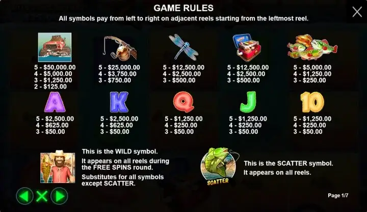 - Pueden aparecer símbolos de pescador adicionales, que aumentan la colección de símbolos de peces para conseguir premios en metálico.