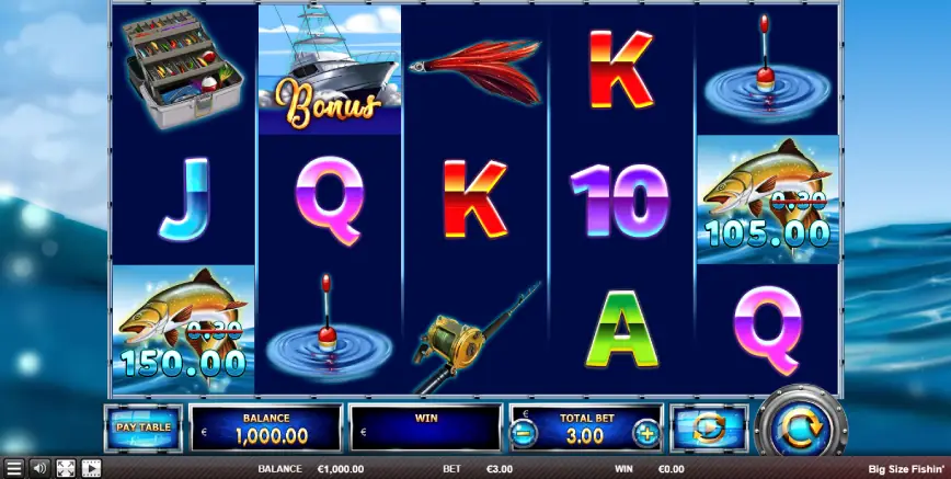 La historia detrás de Bigger Size Fishin’ se centra en una aventura de pesca donde los jugadores asumen el papel de un pescador en busca de grandes recompensas. La slot está ambientada en un idílico escenario de lago, donde cada giro de los carretes es una oportunidad más para lanzar la caña y recoger peces con premios en efectivo. Esta temática no es solo un telón de fondo, sino que también influye en las mecánicas del juego, haciendo que cada giro se sienta como una nueva jornada de pesca.