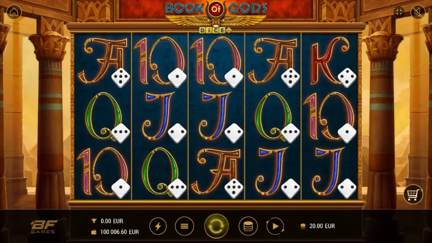 Book of Gods Dice es una tragamonedas que combina lo mejor del estilo “Book of…” con funciones modernas y un diseño visualmente impactante. Con una ganancia máxima de hasta 5.015 veces tu apuesta, un RTP competitivo del 96.12% y una mecánica de giros gratis con símbolo expansivo que puede cambiarlo todo en segundos, este título de BF Games está hecho para quienes disfrutan del riesgo con grandes recompensas. Su doble símbolo Wild/Scatter, opción de compra de bono, modo Gamble y compatibilidad total con dispositivos móviles la convierten en una slot tan emocionante como accesible. Perfecto para todos los jugadores que buscan un desafío egipcio con alma propia.