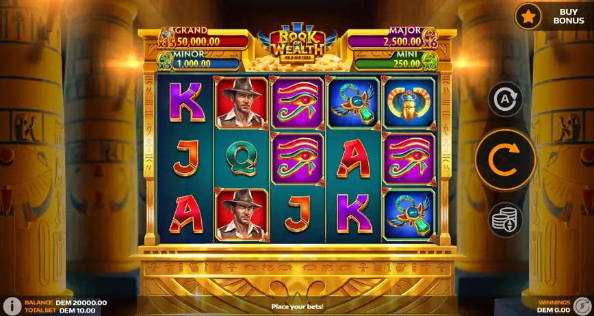 Al sumergirse en Book of Wealth III, los jugadores son transportados a los misteriosos paisajes del Antiguo Egipto. Esta tragamonedas ofrece una narrativa envolvente donde los tesoros ocultos y las recompensas esperan ser descubiertos. Los jugadores se embarcan en una aventura épica en busca del legendario Libro de la Riqueza, un artefacto capaz de conceder deseos y traer riquezas inimaginables a su poseedor. La historia se centra en una exploradora decidida a desvelar los secretos ocultos en el desierto, heredera de un intrépido explorador que desapareció en su búsqueda.