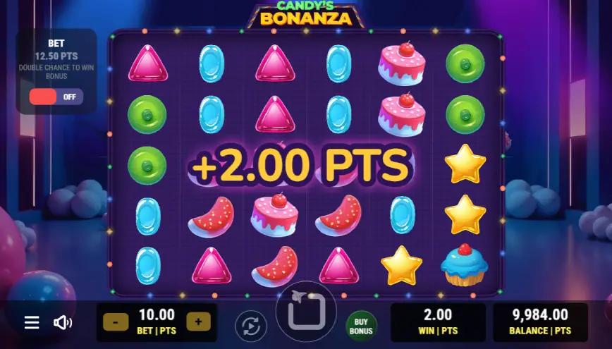 Candy’s Bonanza ofrece una gama de apuestas flexible, lo que la hace accesible a todos los jugadores. La apuesta mínima es accesible, permitiendo a los jugadores con un presupuesto limitado disfrutar del juego, mientras que la apuesta máxima ofrece potencial para ganancias significativas para aquellos dispuestos a arriesgar más.