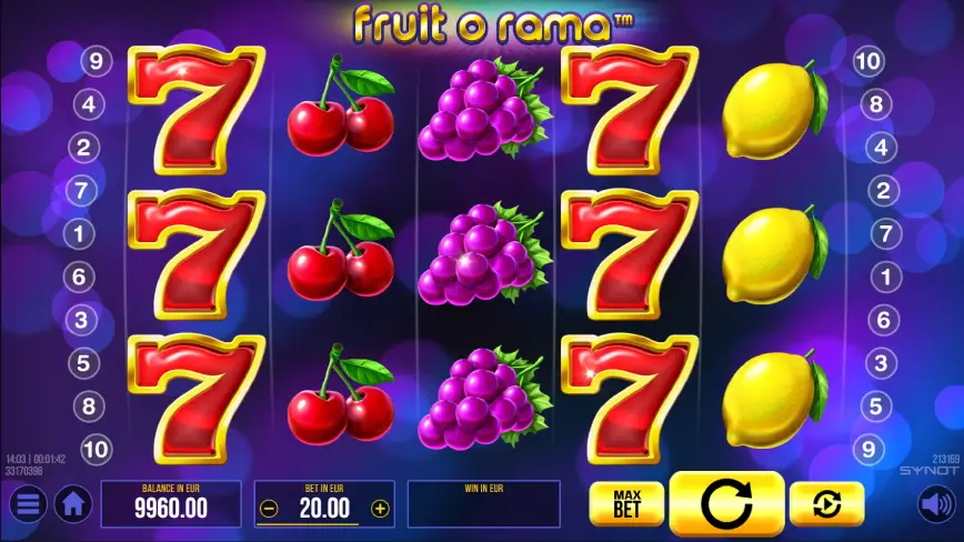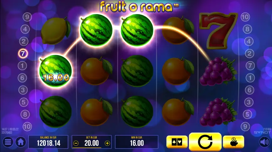 Fruit O Rama presenta una estructura de 5 carretes y 10 líneas de pago que pagan en ambas direcciones, lo cual es una característica que sin duda aumenta las posibilidades de ganar. A diferencia de otras tragamonedas tradicionales, esta configuración permite que las combinaciones ganadoras se formen tanto de izquierda a derecha como de derecha a izquierda, proporcionando así más oportunidades para que los jugadores obtengan ganancias significativas.