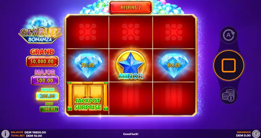 GemBlitz Bonanza rompe con la tradición al ofrecer un formato de cuadrícula 3×3 que elimina las líneas de pago convencionales. En lugar de esto, introduce la innovadora función “Claim Win”, donde los jugadores pueden acumular y reclamar ganancias hasta un 200% del valor total de las apuestas en el juego base. Además, al activar el juego de bonificación, los jugadores pueden encontrar símbolos sorpresa que se transforman, ofreciendo aún más oportunidades de ganar. La ausencia de líneas de pago tradicionales y la inclusión de símbolos como el “Collector” y el “Jackpot” proporcionan un enfoque novedoso que añade un elemento de estrategia y sorpresa a cada sesión de juego.