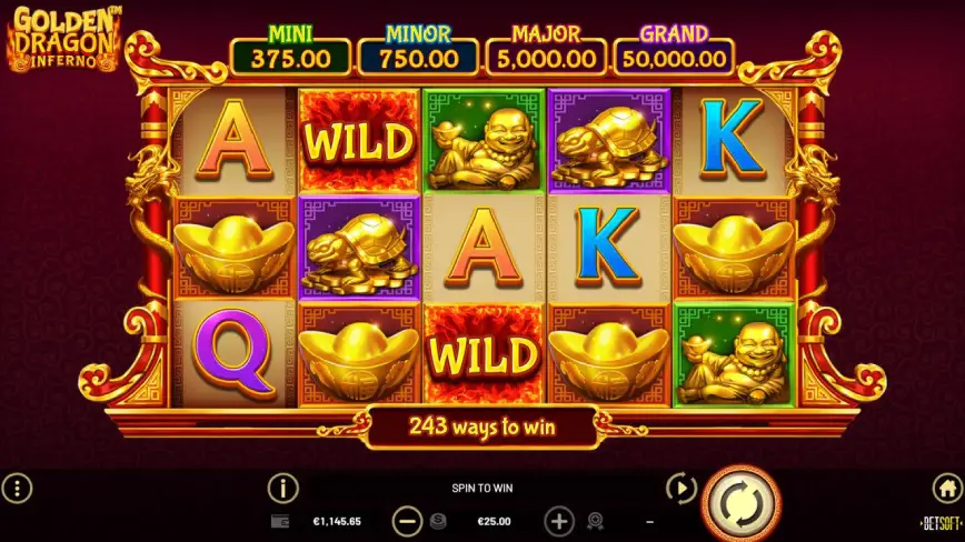Uno de los aspectos más seductores de Golden Dragon Inferno es la posibilidad de ganar hasta 5000 veces el valor de tu apuesta. Esta recompensa máxima es un gran incentivo para los jugadores que buscan un juego con el potencial de grandes victorias. La combinación de un RTP alto y ganancias máximas significativas hace de esta tragaperras una opción atractiva para una amplia variedad de jugadores.