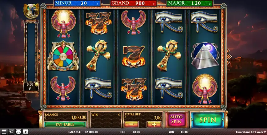 El símbolo Wild de Osiris es otro símbolo destacado que puede aparecer en el carrete central de Guardians of Luxor 2. Este símbolo se expande para cubrir todo el carrete, actuando como un Wild y activando re-giros en los otros carretes. Este tipo de respin puede ser especialmente útil si deseas aumentar tus combinaciones ganadoras sin realizar una nueva apuesta.