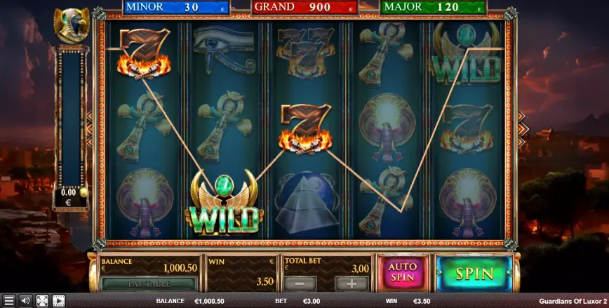 Guardians of Luxor 2 presenta una estructura de juego clásica de 5 carretes y 3 filas, que es tanto familiar como efectiva para una experiencia de tragamonedas envolvente. Con un total de 25 líneas de pago, ofrece múltiples oportunidades para formar combinaciones ganadoras. Este formato es ideal para jugadores que disfrutan de una experiencia de juego directa pero emocionante, con suficientes líneas de pago para mantener el interés sin complicaciones innecesarias.