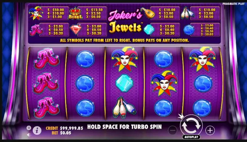 El rango de apuestas en Joker’s Jewels es ideal para jugadores que desean controlar su gasto sin sacrificar la emoción del juego. Con una apuesta mínima de tan solo $0.05 USD, incluso los jugadores más cautelosos pueden disfrutar del juego sin preocupaciones. Por otro lado, la posibilidad de apostar hasta $25 USD por giro atraerá a aquellos jugadores que están dispuestos a arriesgar más para buscar mayores recompensas.