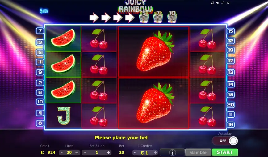 Al explorar la tragamonedas Juicy Rainbow, uno de los aspectos más emocionantes es su enfoque en comodines, bonificaciones y tiradas gratis. Estas características no sólo realzan el atractivo del juego, sino que también aumentan significativamente las posibilidades de ganar, lo que siempre es bien recibido por los jugadores.