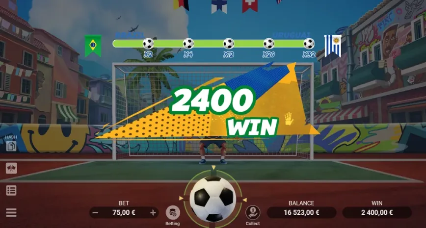 Penalty Shoot Out fue desarrollado por Evoplay, lanzado oficialmente en julio de 2023. Desde su primer lanzamiento, ha capturado la atención tanto de fanáticos del fútbol como de jugadores de casinos online. La ambientación es un estadio lleno de vida, con un público entusiasta y cámaras que no dejan de capturar cada momento.
