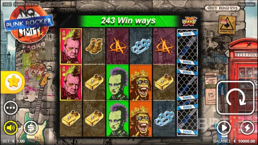 Punk Rocker introduce innovadores símbolos especiales que enriquecen la experiencia de juego. Entre estos, destacan: