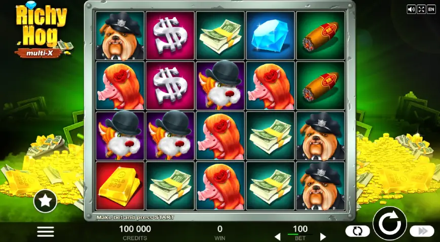 Cuando se trata de lujo y extravagancia en el mundo de las tragamonedas en línea, Richy Hog de Belatra Games es un nombre que destaca. Este juego transporta a los jugadores a un universo lleno de opulencia, protagonizado por un cerdo millonario que disfruta de la buena vida. Con elementos como diamantes, lingotes de oro y fajos de billetes, la tragamonedas capta a la perfección el estilo de vida de los ricos, que muchos jugadores encuentran fascinante. Este tema atrae a los jugadores ofreciéndoles una experiencia visualmente rica a la que es difícil resistirse.