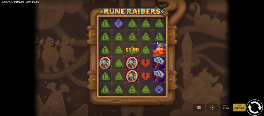 Rune Raiders no se detiene en las tiradas gratis. Ofrece una gama de bonificaciones adicionales que pueden sorprender incluso a los jugadores más experimentados. Una de las características más notables es la conversión de símbolos; si logras llenar la pantalla con una combinación ganadora, todos los símbolos, excepto los Scatters, se convierten en la combinación de mayor pago antes de realizar el pago. Además, los símbolos con Blue Blaze y Red Blaze multiplican sus pagos por diez y cinco veces respectivamente, añadiendo una capa extra de emoción y potencial de ganancia.