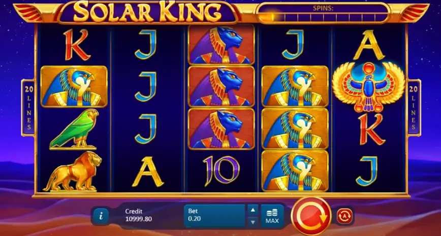 Solar King nos sumerge en una aventura ambientada en el antiguo Egipto, un tema que ha capturado la imaginación de muchos a lo largo de los años. En este juego, podrás encontrar referencias a mitos y símbolos egipcios que realzan la experiencia de juego. Desde los majestuosos templos hasta los misteriosos jeroglíficos, cada detalle está diseñado para evocar la grandeza de esta civilización. Este enfoque temático no solo enriquece el juego, sino que también ofrece una inmersión completa en la historia y cultura egipcias.