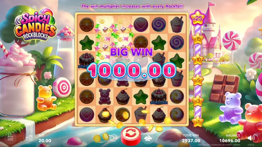 Spicy Candies RockBlocks ofrece una narrativa que se despliega en un mundo de dulces picantes, capturando la atención de los jugadores desde el primer instante. La ambientación del juego está cuidadosamente elaborada para complacer a todos los jugadores. El objetivo es claro: sumergir a los jugadores en un entorno de fantasía donde cada símbolo y giro cuenta una historia. En este juego, incluso los giros más simples están llenos de sorpresas, como el potencial de activar multiplicadores y funciones especiales que añaden una capa extra de emoción.