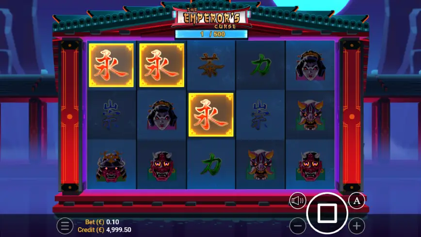 Los símbolos especiales son una parte esencial de The Emperor’s Curse. Los Wilds, representados por un hombre japonés con ojos rojos intensos, no solo sustituyen a los símbolos regulares, sino que también pueden activar respins, bloqueándose en su lugar para ofrecer una nueva oportunidad de formar combinaciones ganadoras. Los Scatters, simbolizados por monedas doradas, son igualmente importantes, ya que al aparecer en el tablero, no solo desencadenan giros gratis sino que también contribuyen al conteo imperial, que es clave para activar el juego de bonificación imperial.