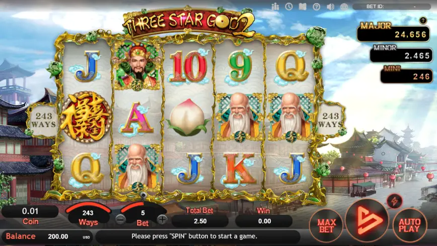 El diseño de Three Star God 2 está profundamente influenciado por la mitología china, lo que se refleja claramente en sus símbolos y narrativa. Los personajes principales del juego, conocidos como los Tres Dioses Estrella, son figuras populares en la cultura china, venerados por muchos por su simbolismo de riqueza, salud y fortuna. Estos dioses no solo forman parte del trasfondo del juego, sino que también juegan un papel crucial en las mecánicas del mismo, ofreciendo funciones especiales que pueden aumentar significativamente las ganancias del jugador.