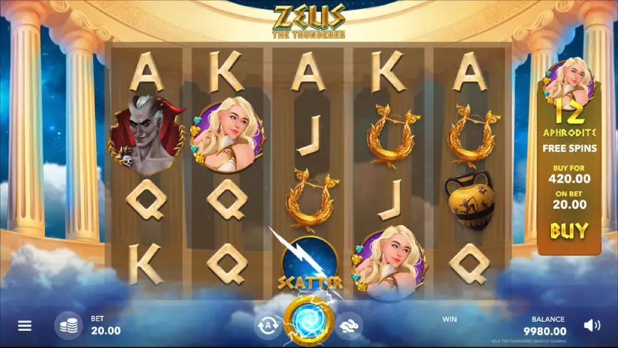 Zeus the Thunderer presenta una configuración clásica con varios carretes y múltiples líneas de pago. Esta estructura permite una amplia variedad de combinaciones ganadoras, ofreciendo a los jugadores numerosas oportunidades de obtener premios. Además, el juego incluye características especiales como el “Risk & Buy”, que ofrece una dinámica innovadora para maximizar las ganancias o adquirir giros gratis estratégicamente.